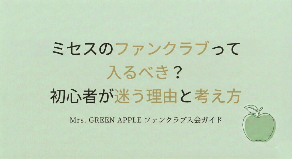 Mrs. GREEN APPLEのファンクラブ入会を迷っている初心者向けに、よくある不安や考え方を整理。無理に入らなくていい理由も含めて解説します。 -